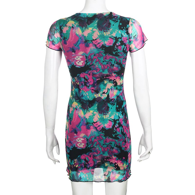 Darlingaga Colorful Butterfly Print Summer Dress Mesh Patchwork Harajuku Festival Woman Dress Mini Sundress Slim Clothes Dresses