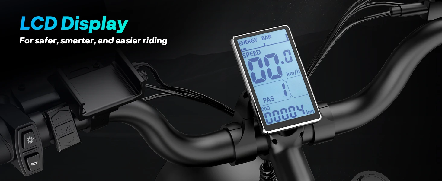【Fat Tires & Dual Hydraulic Disc Brakes】With its puncture-resistant 20"x4" fat tires, this ebike provides a stable grip on any terrain, including snow, beaches, and rough mountain roads. The dual oil disc brakes offer greater stopping power and precise, instant braking, even in wet weather, ensuring your safety at all times.