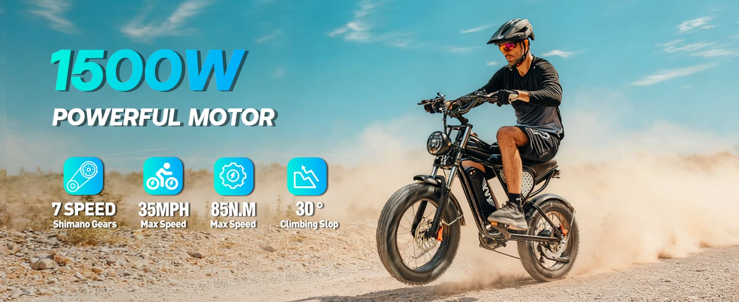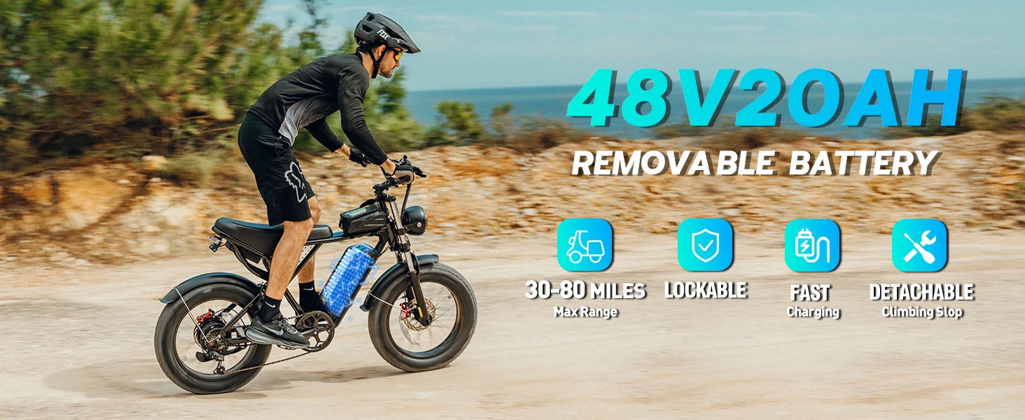 【1500W high-speed motor & removable 48V 20Ah battery】This electric bike is a perfect choice for daily commutes and mountain adventures. The battery can be charged within 6-8 hours, and the bike can reach a top speed of 30 miles/hour, providing a thrilling ride experience. Upgrade to our electric motorcycle for adults now and enjoy the convenience and excitement of this amazing ride!